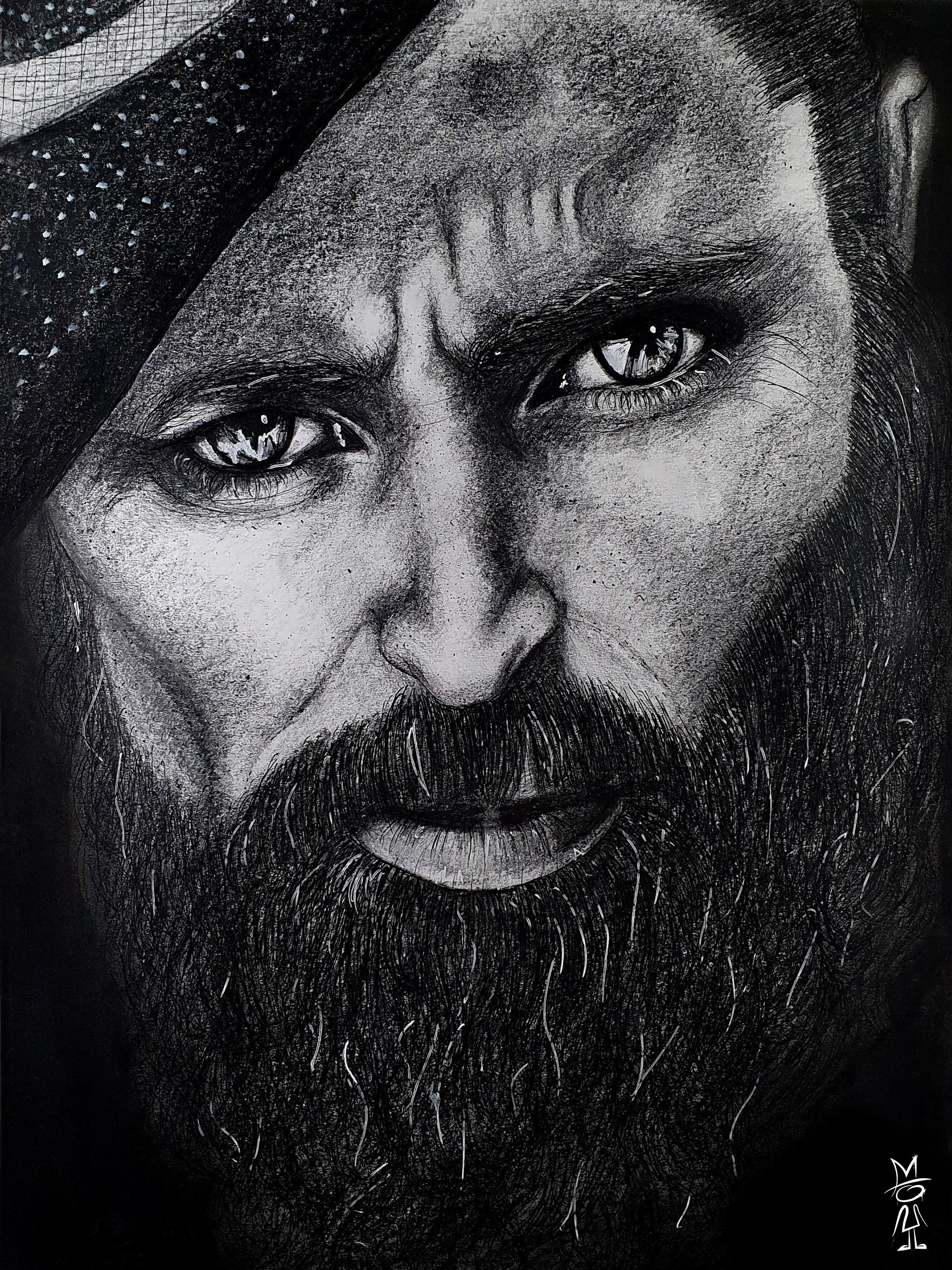 Buntstift und Kohle auf Papier
